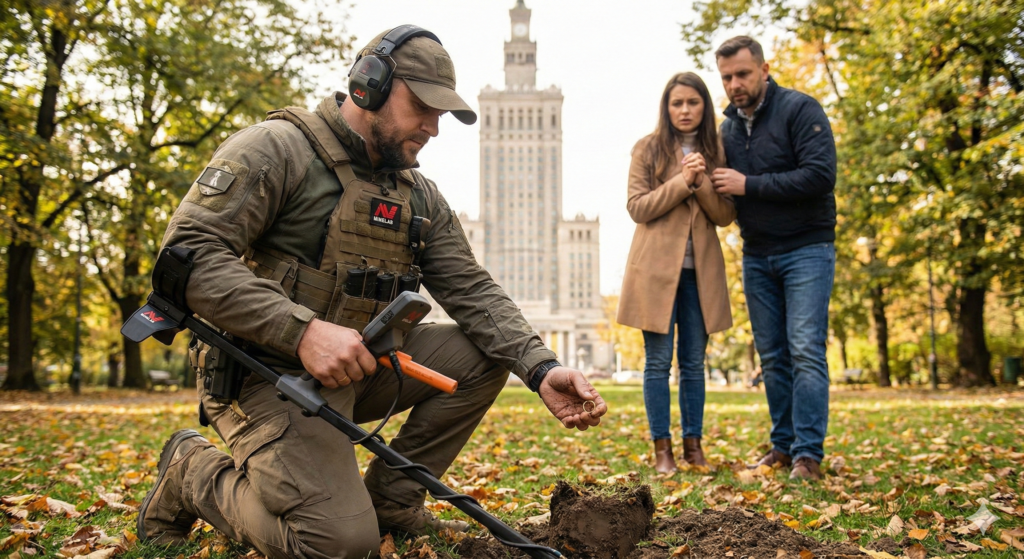 Jeśli zgubiłeś pierścionek w zaśmieconym terenie – np. w parku przy ulicy Puławskiej czy w okolicach Dworca Wileńskiego, gdzie ziemia jest pełna metalowych śmieci – używamy małych cewek typu „snajper”. Pozwalają one „wyłuskać” sygnał złotej obrączki spomiędzy dwóch zardzewiałych kapsli leżących 5 cm obok.
