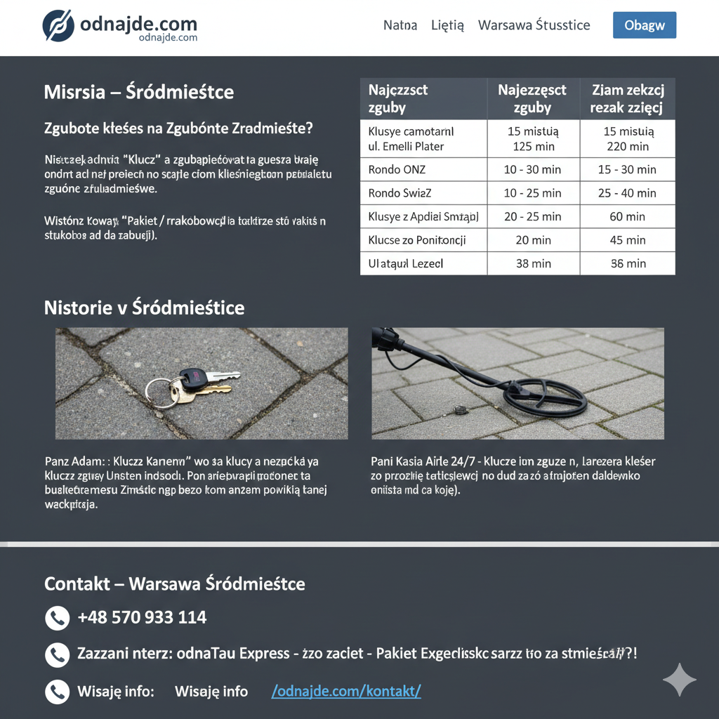 Luty 2026 roku. Warszawa Śródmieście nie śpi, ona pulsuje. Jeśli stoisz teraz na rogu Marszałkowskiej i Świętokrzyskiej, czując pod palcami jedynie pustkę w kieszeni tam, gdzie jeszcze przed chwilą spoczywał chłodny metal Twoich kluczy, witaj w samym centrum największego wyzwania logistycznego w Twoim życiu. Ale nie bój się – nie jesteś sam. Jesteś w zasięgu odnajde.com, jedynego w Polsce cyfrowo-technologicznego pogotowia detektorystycznego, które traktuje Twoje zgubione klucze jak sprawę wagi państwowej.